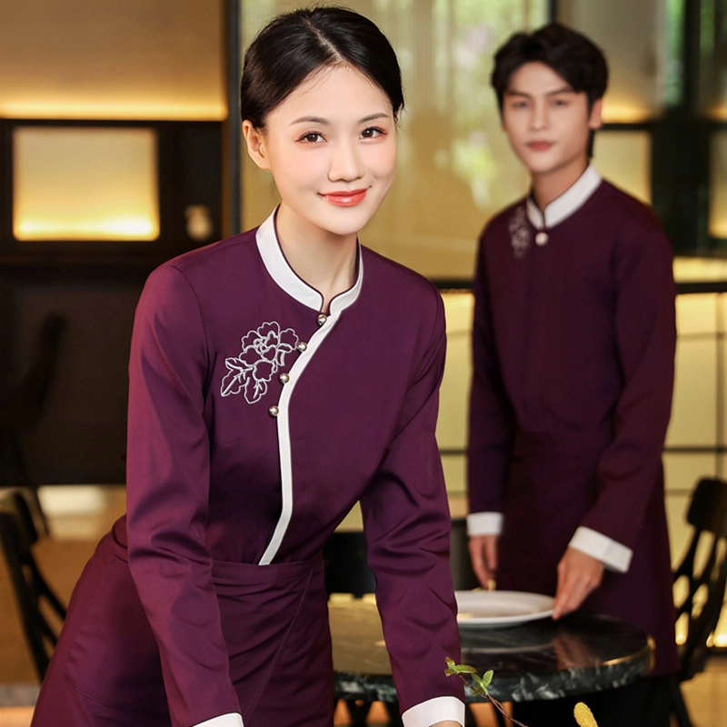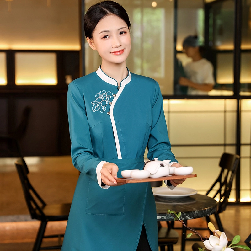 long sleeve floral embroidery waiter waitress jacket uniform Chinese blouse