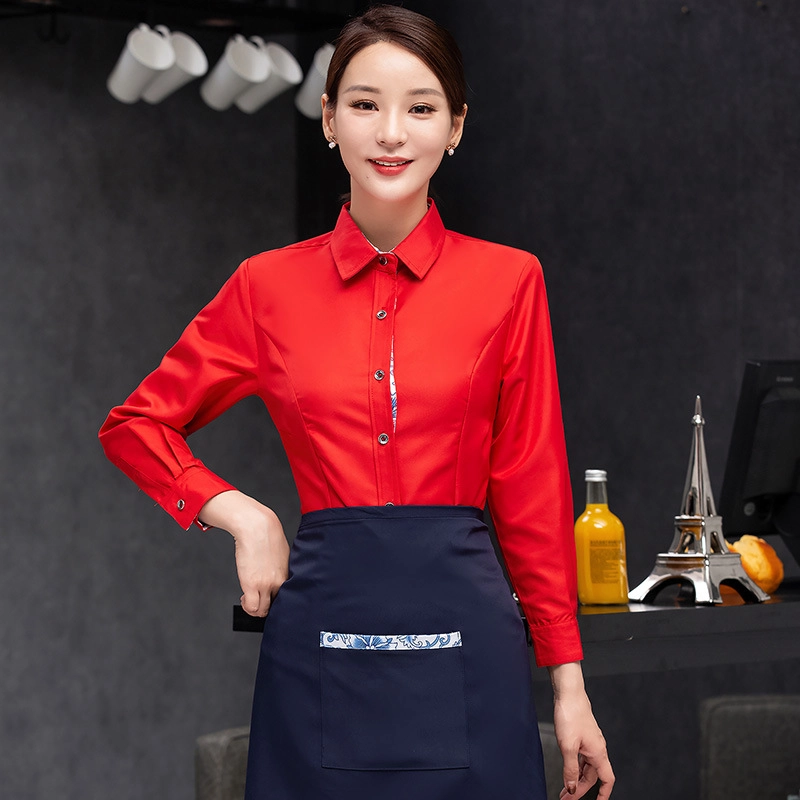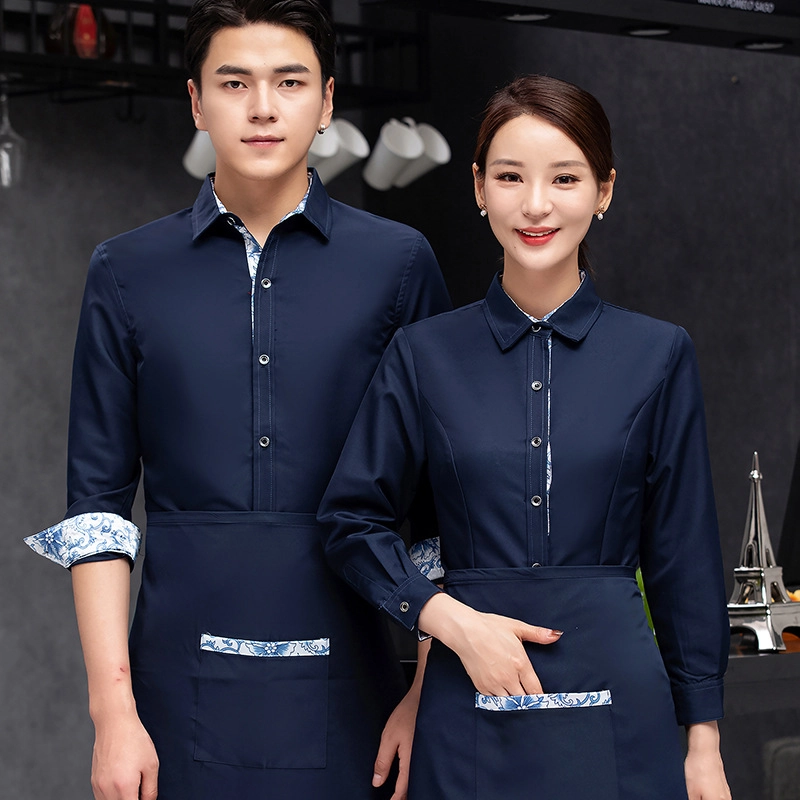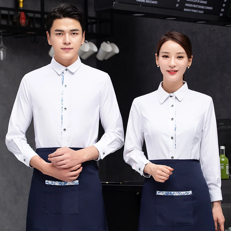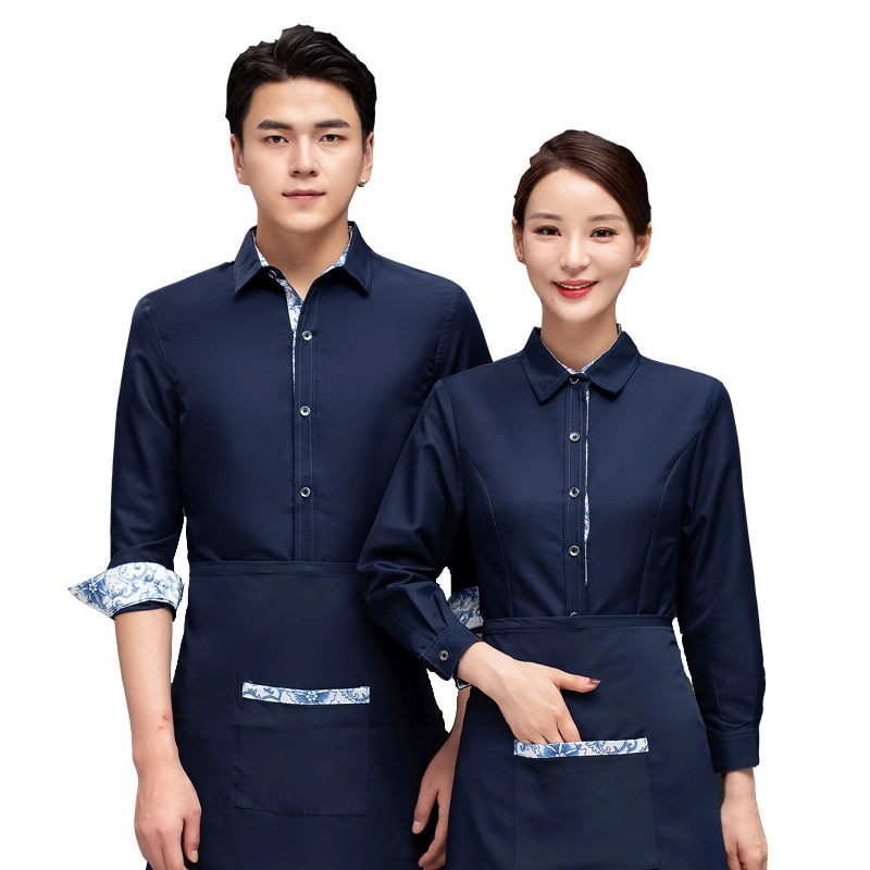 high quality printing hem tea house restaurant waiter shirt uniform working wear