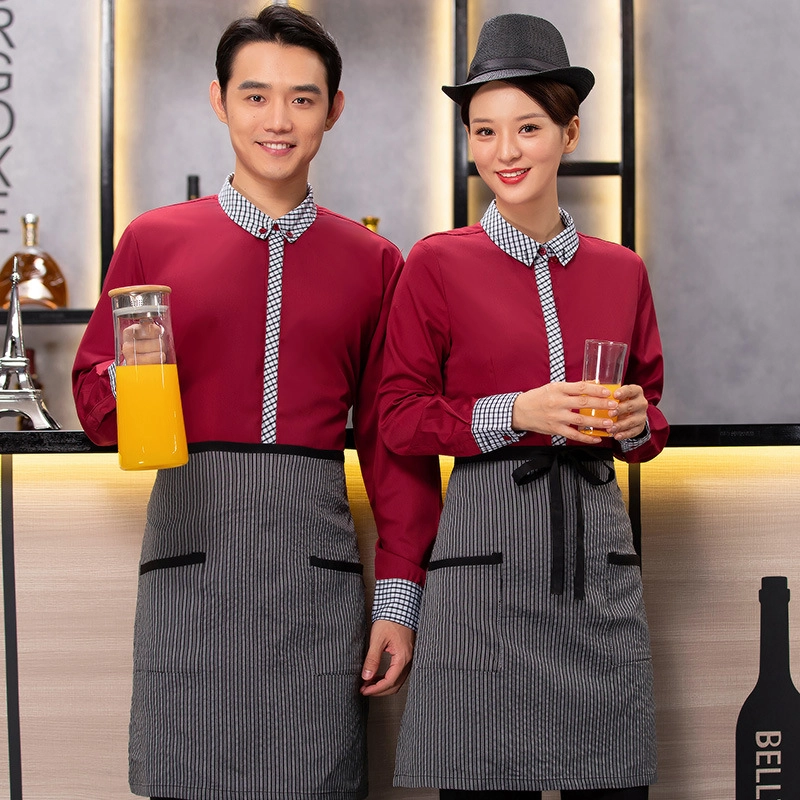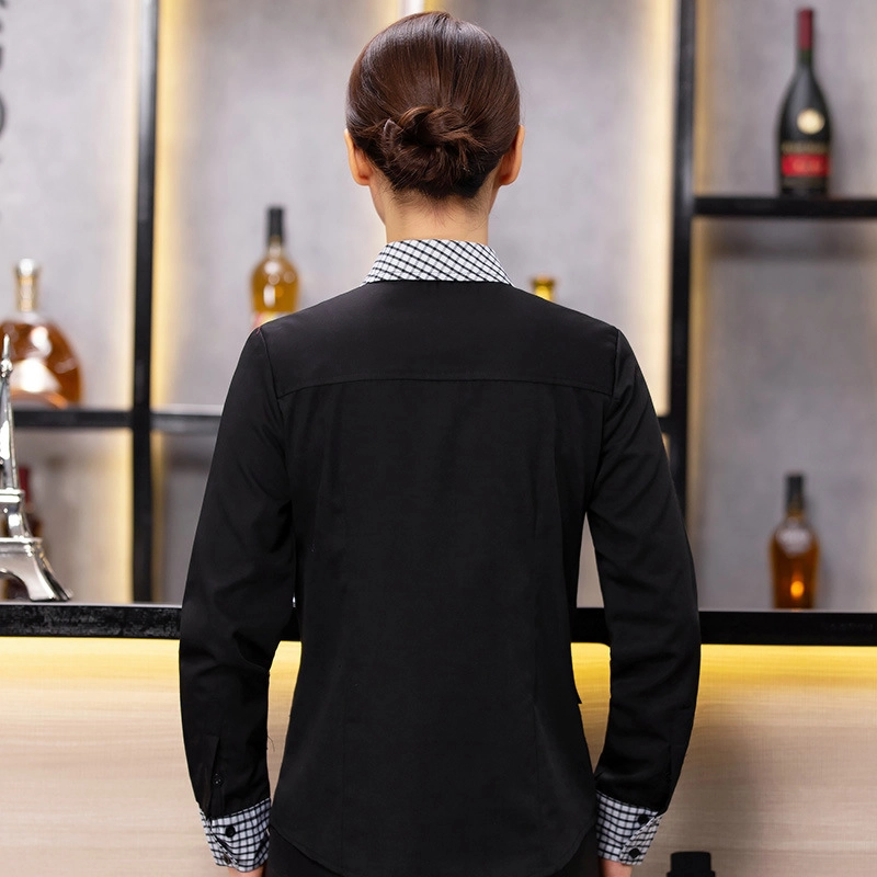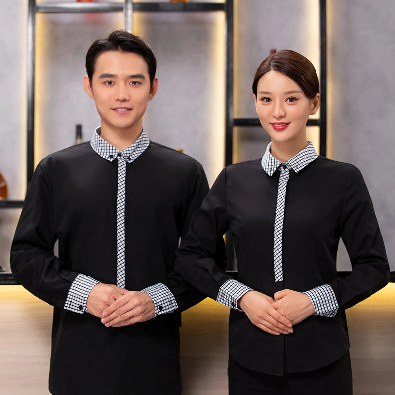 checkered collar long sleeve waiter/waitress shirt work uniform