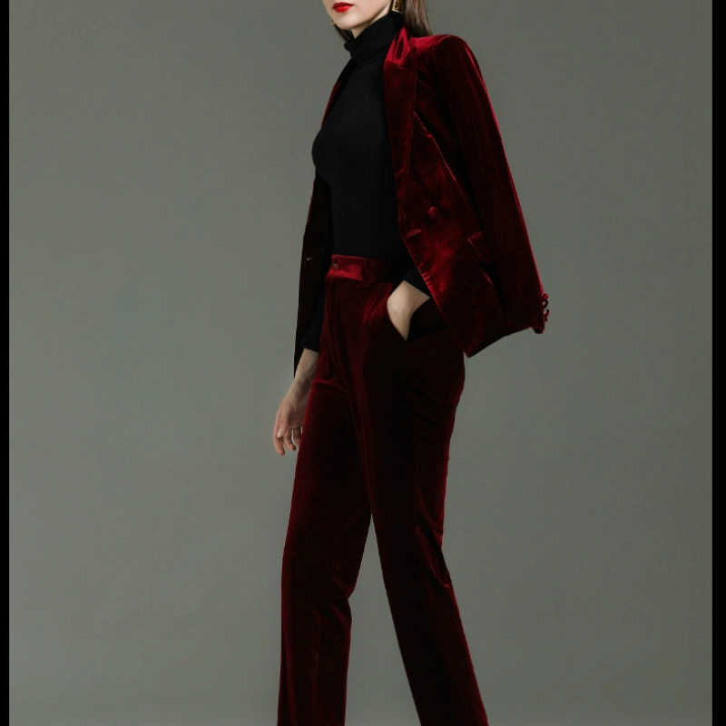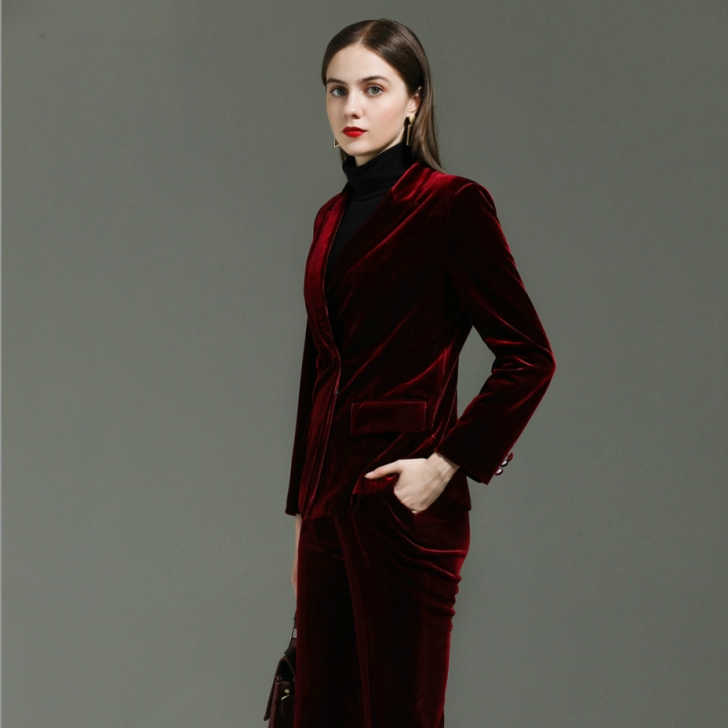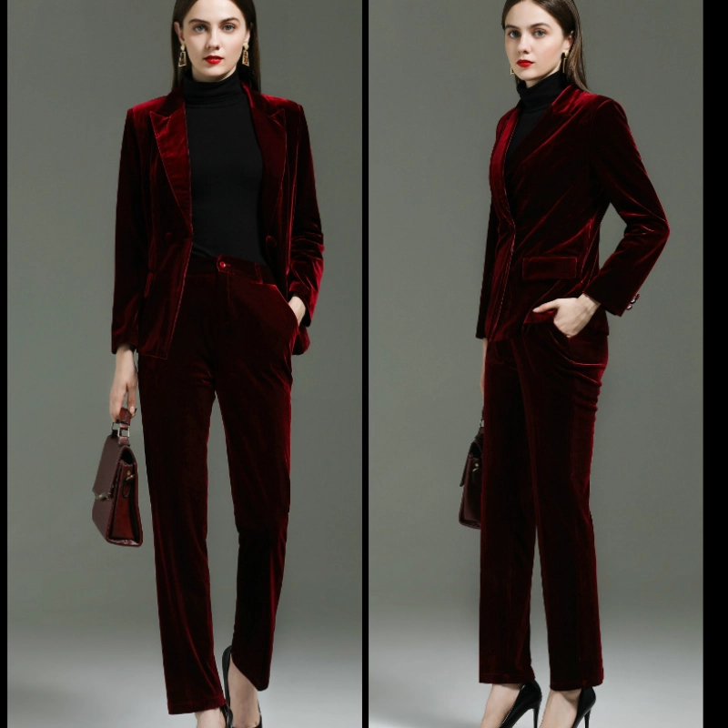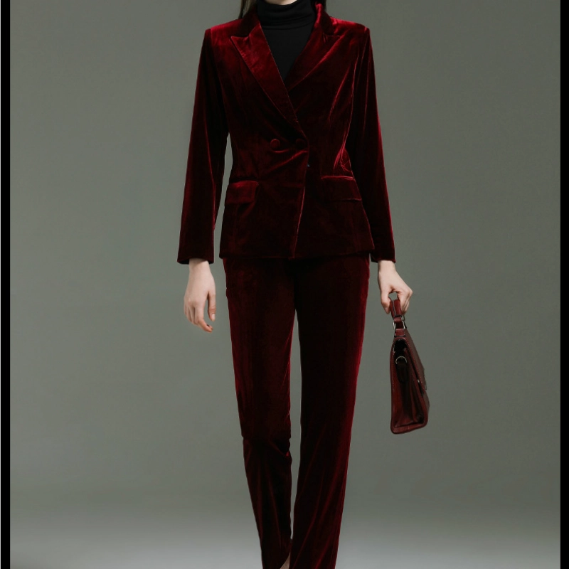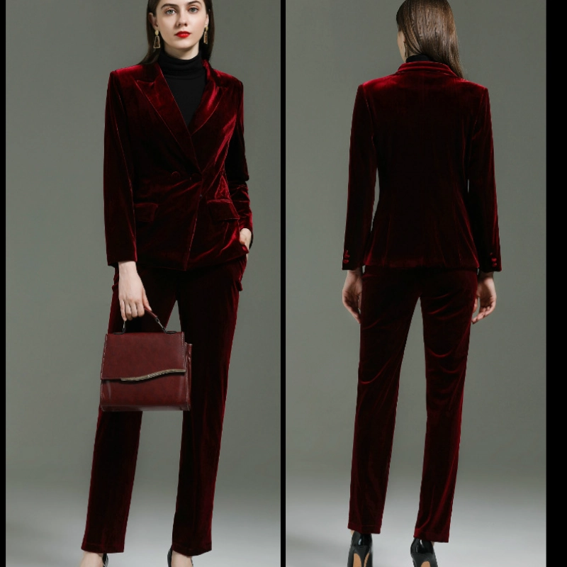fashion high quality casual pleuche fabric double breasted women suit pant suit