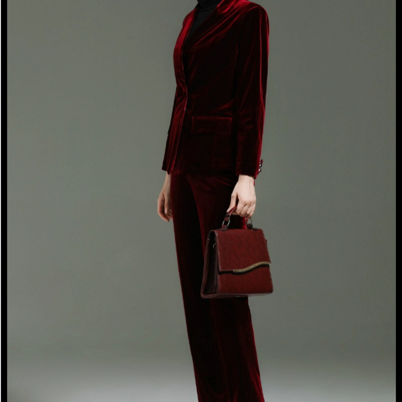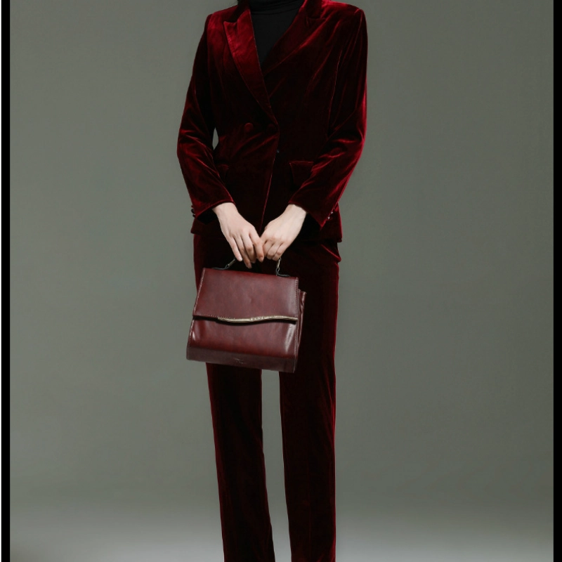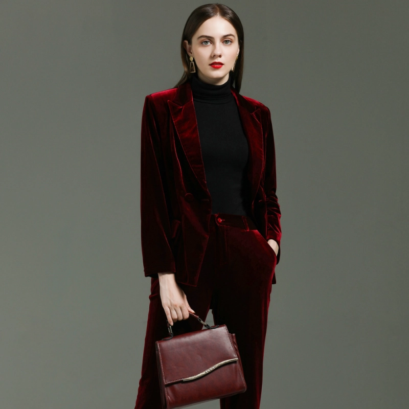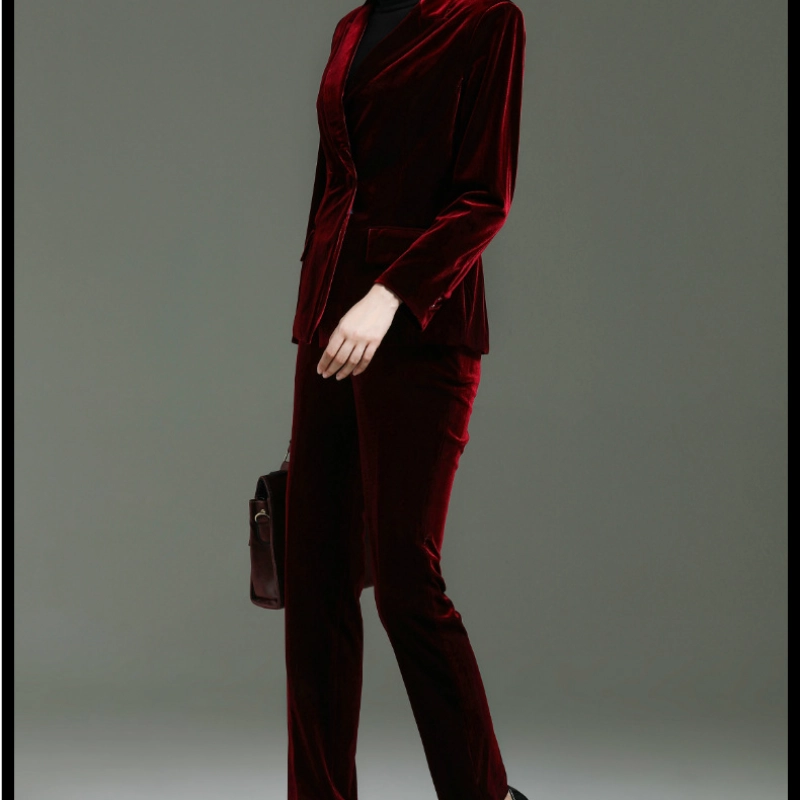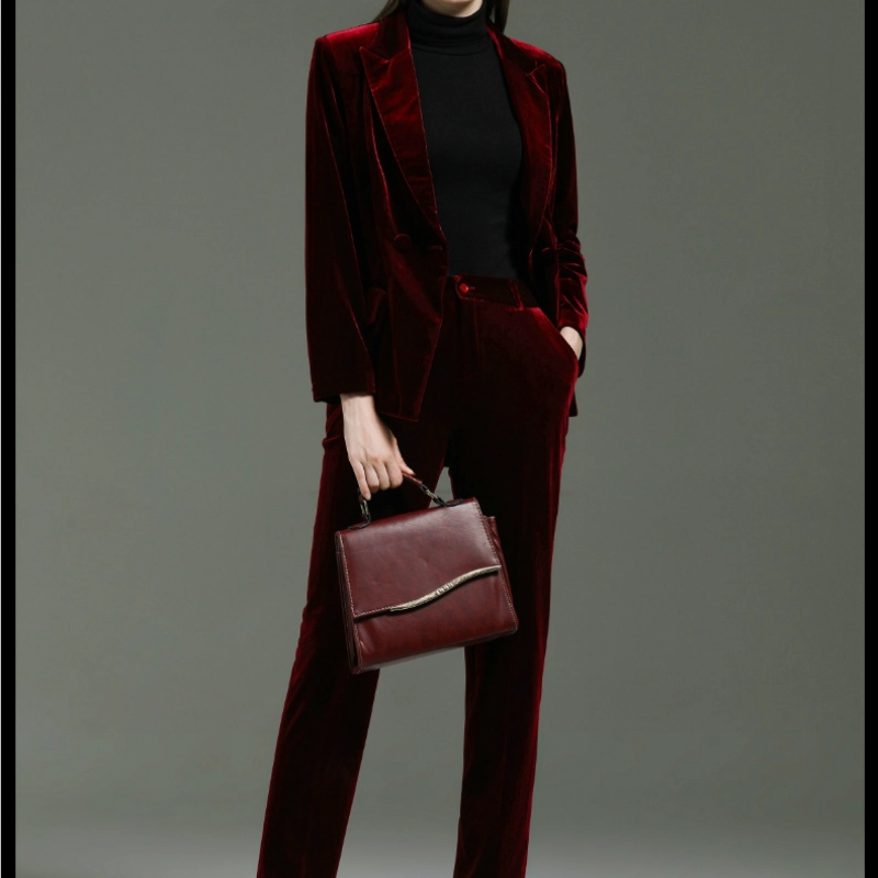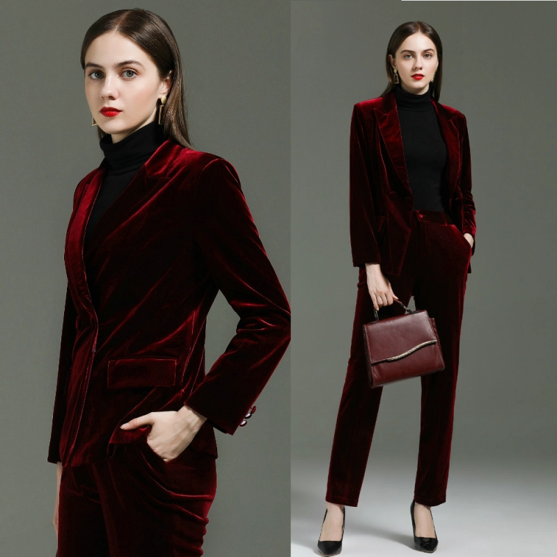 fashion high quality casual pleuche fabric double breasted women suit pant suit