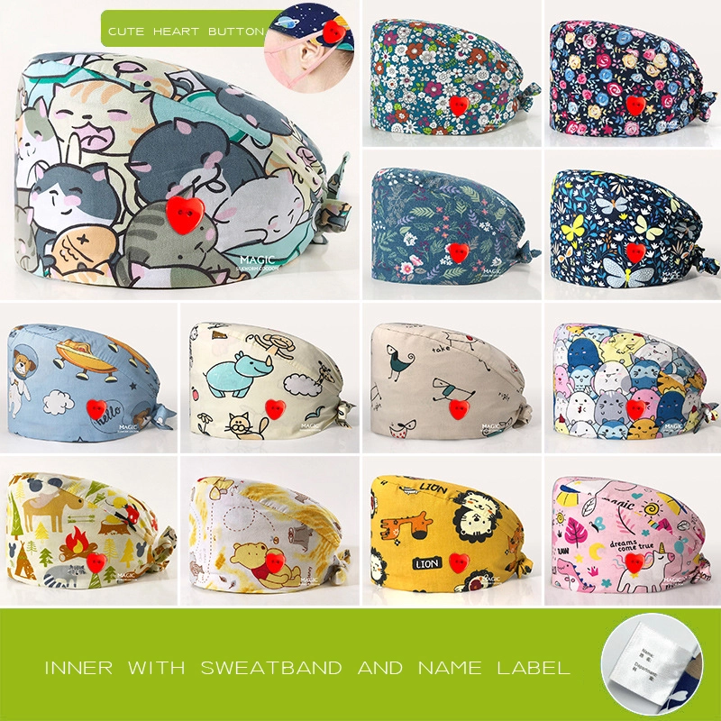 high quality cotton breathable printing cartoon nurse hat cap factory outlets