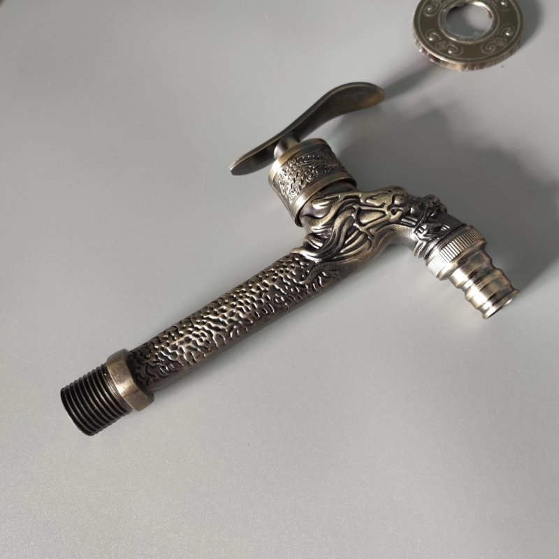 S style handle hot sale bronze color retro dragon pattern metal garden farm tap washing machine faucet