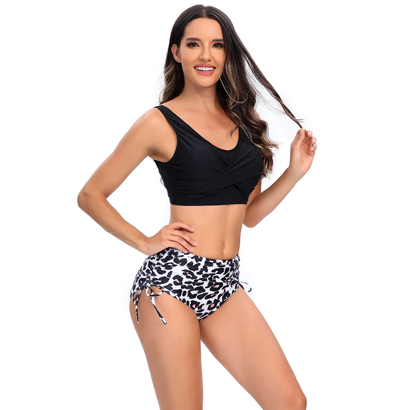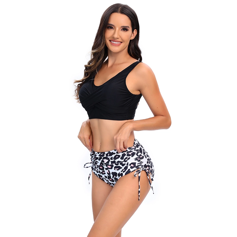 leopard shorts wrap chest black top women swimwear two-piece swimsuit