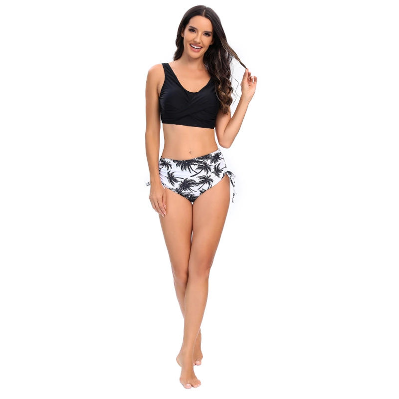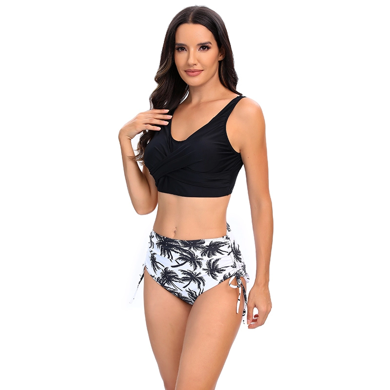 coconut tree shorts wrap chest black top women swimwear two-piece swimsuit
