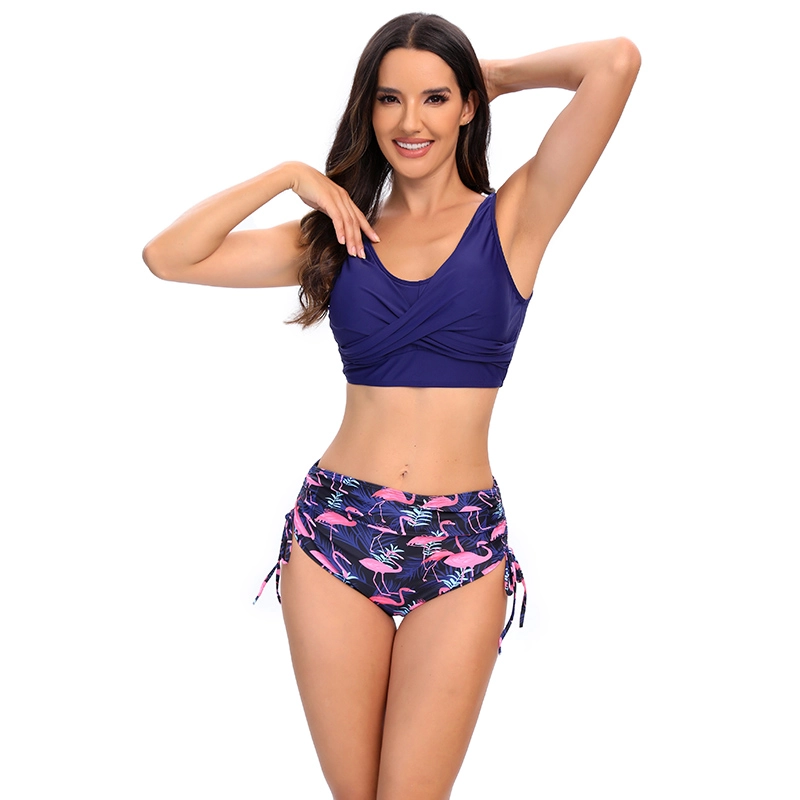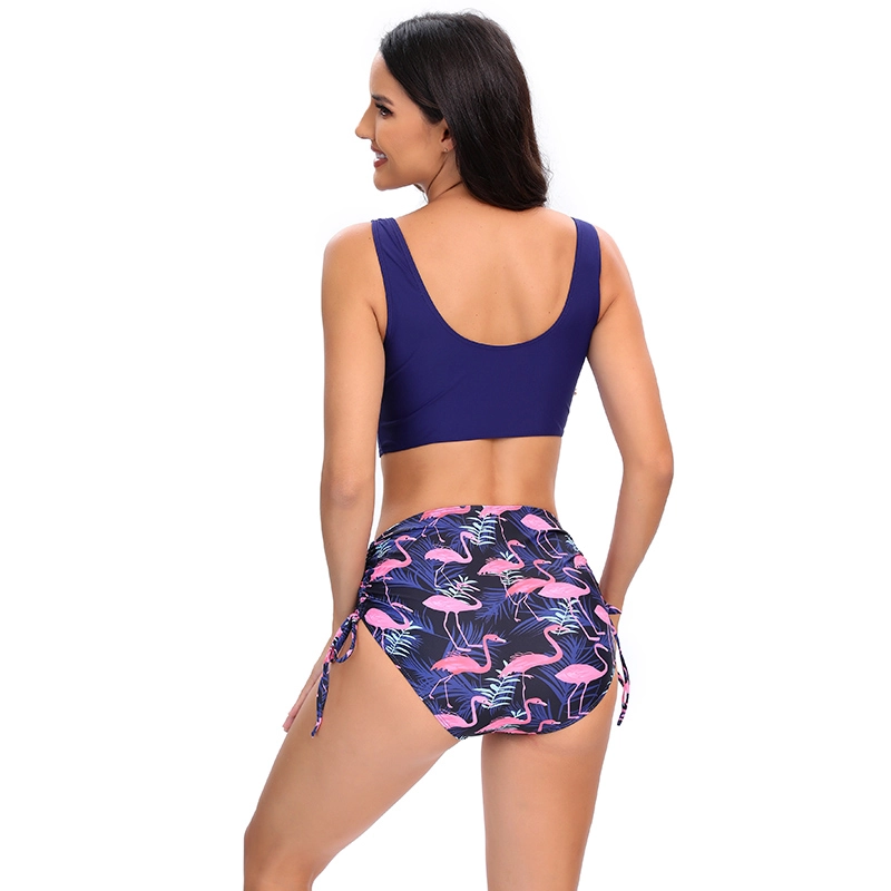 flamingo shorts wrap navy bra top bikini women swimwear two-piece swimsuit