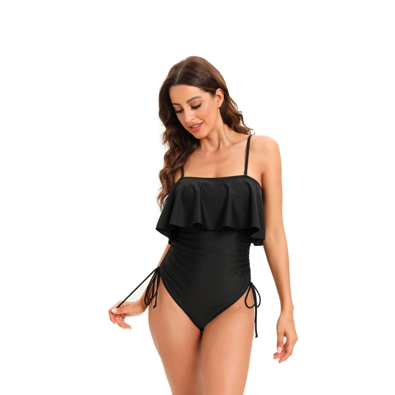one-piece design fashion ruffle hem solid color slip lady bikini swimwear for women one-piece swimsuit MX2507