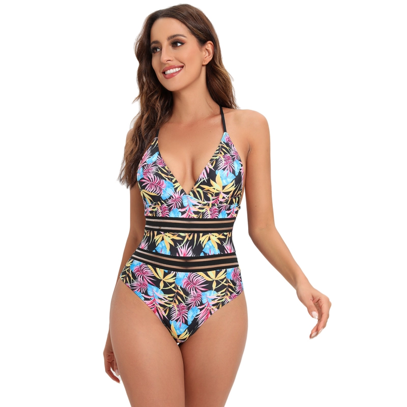 south America tropical rain forest plant printing one-piece design women swimwear swimsuit for women MX2527 wholesale