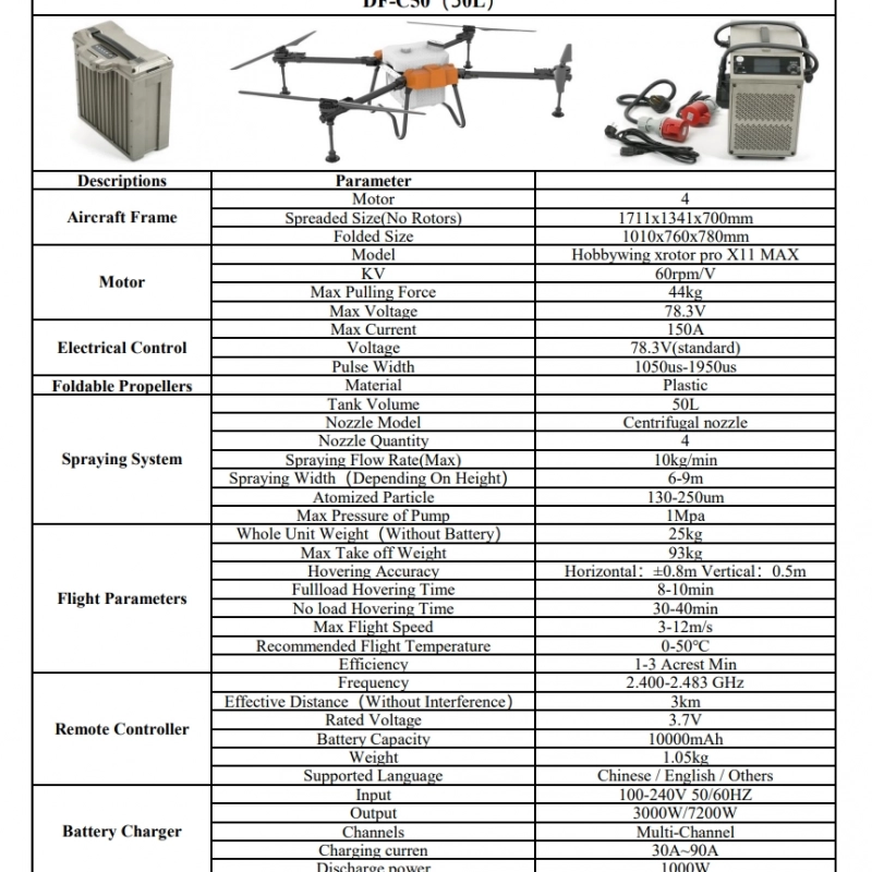 Agricultural Drone 4 Axis 4-axis 50L (water mist machine)spray drone