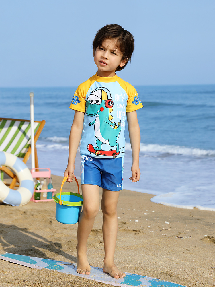 Europe cartoon printing Dinosaur boy swimwear 5-10years old