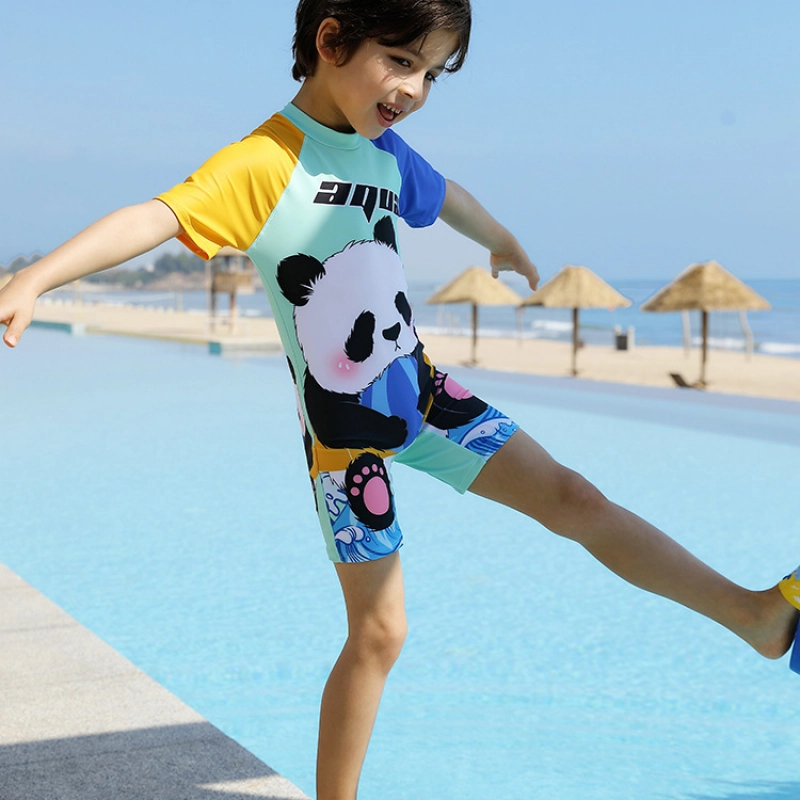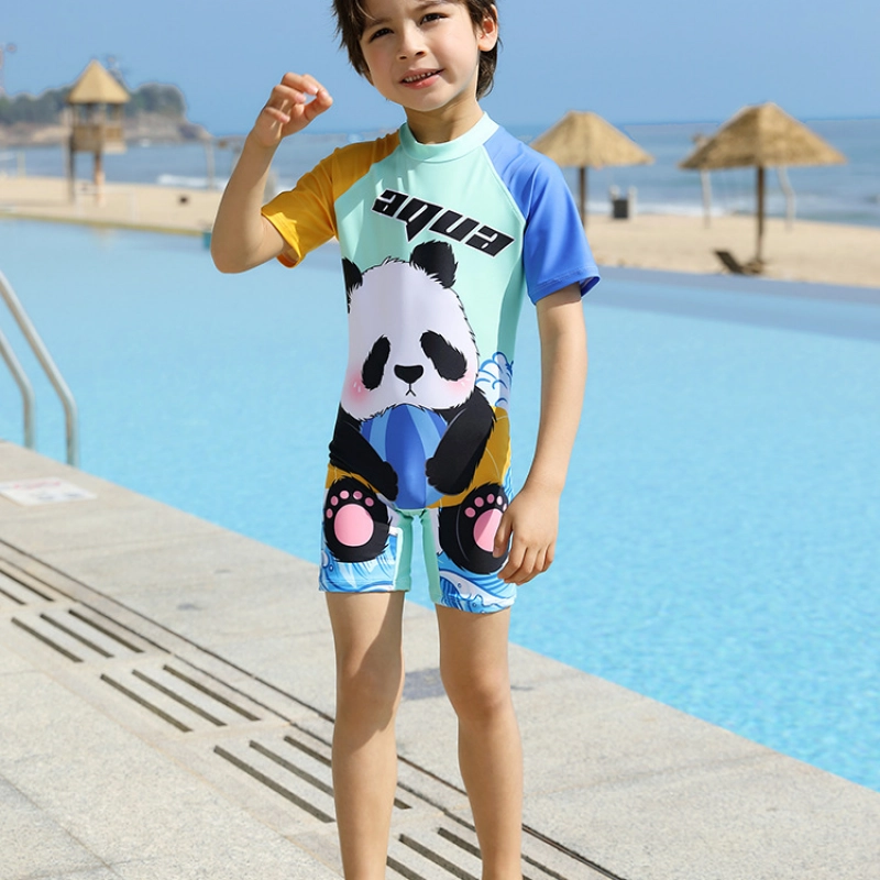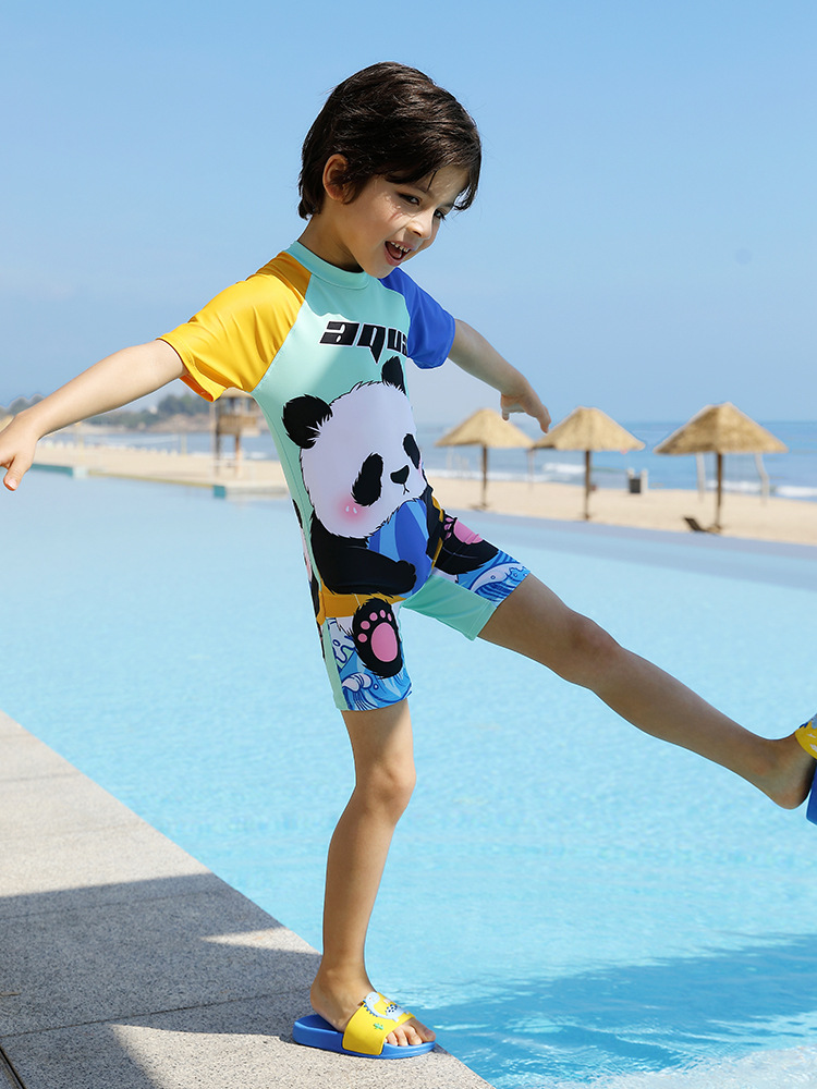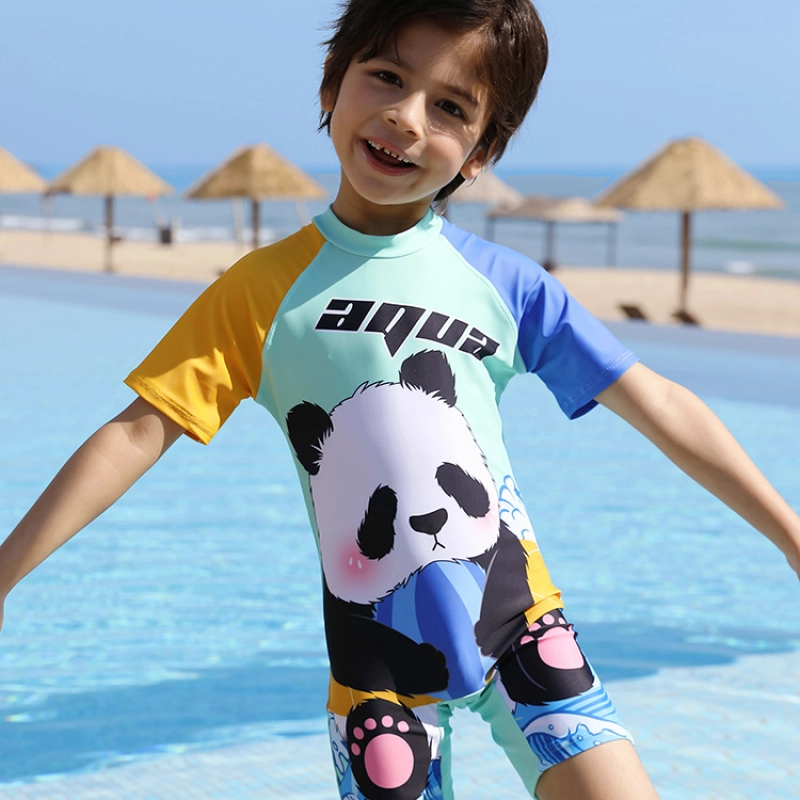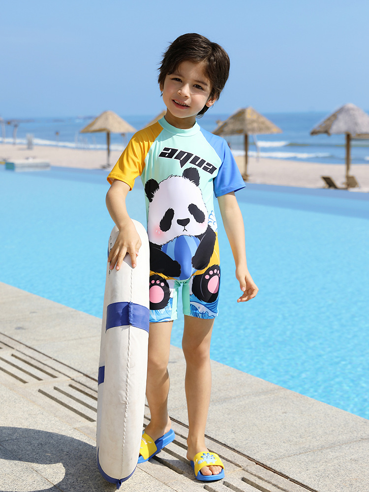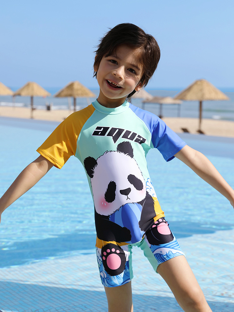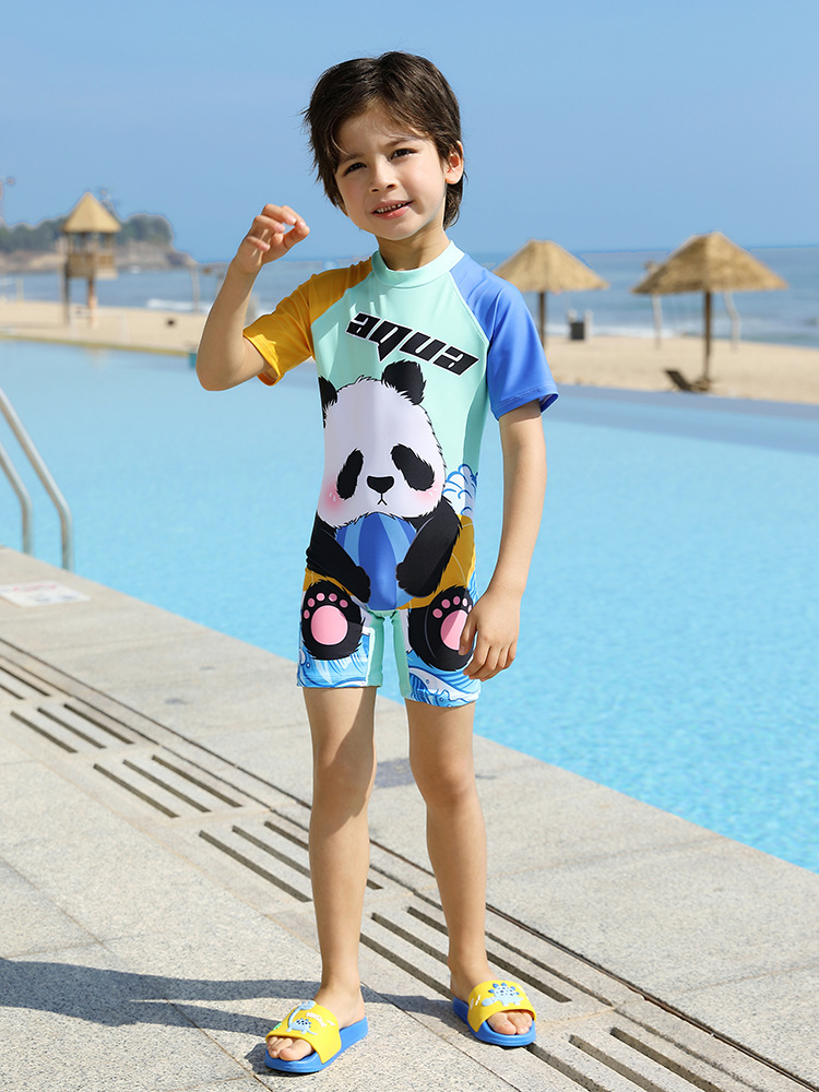 panda printing cartoon boy swimsuit swimwear two-piece swimsuit for boy